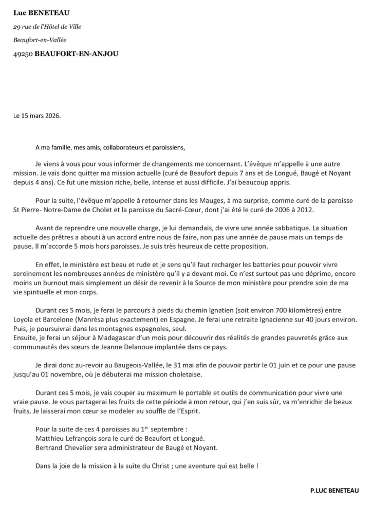 Accueil > Actualités > Message de Père Luc aux paroissiens